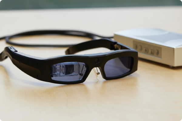 従来の小型ディスプレイ方式と比較して、視力やピント調節に影響されにくく、違和感の少ないデザインが実現できるという特徴を持つ。